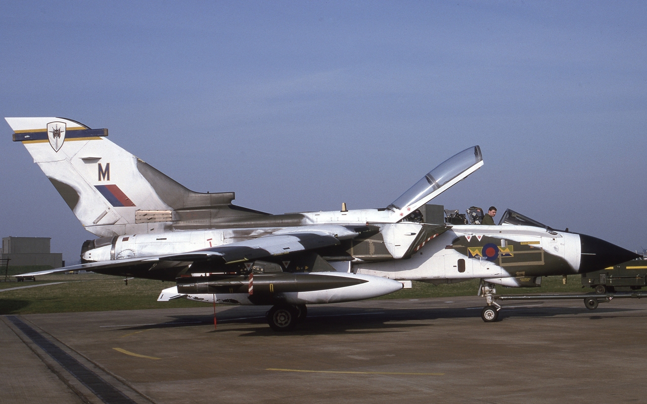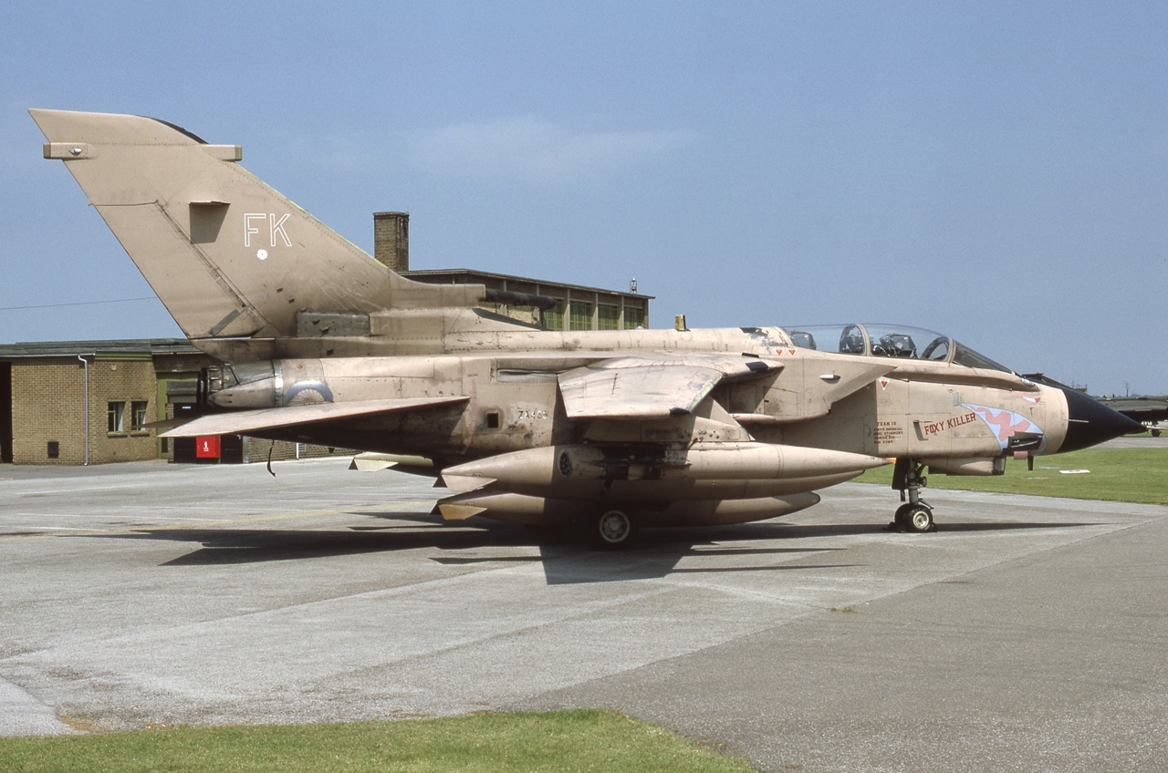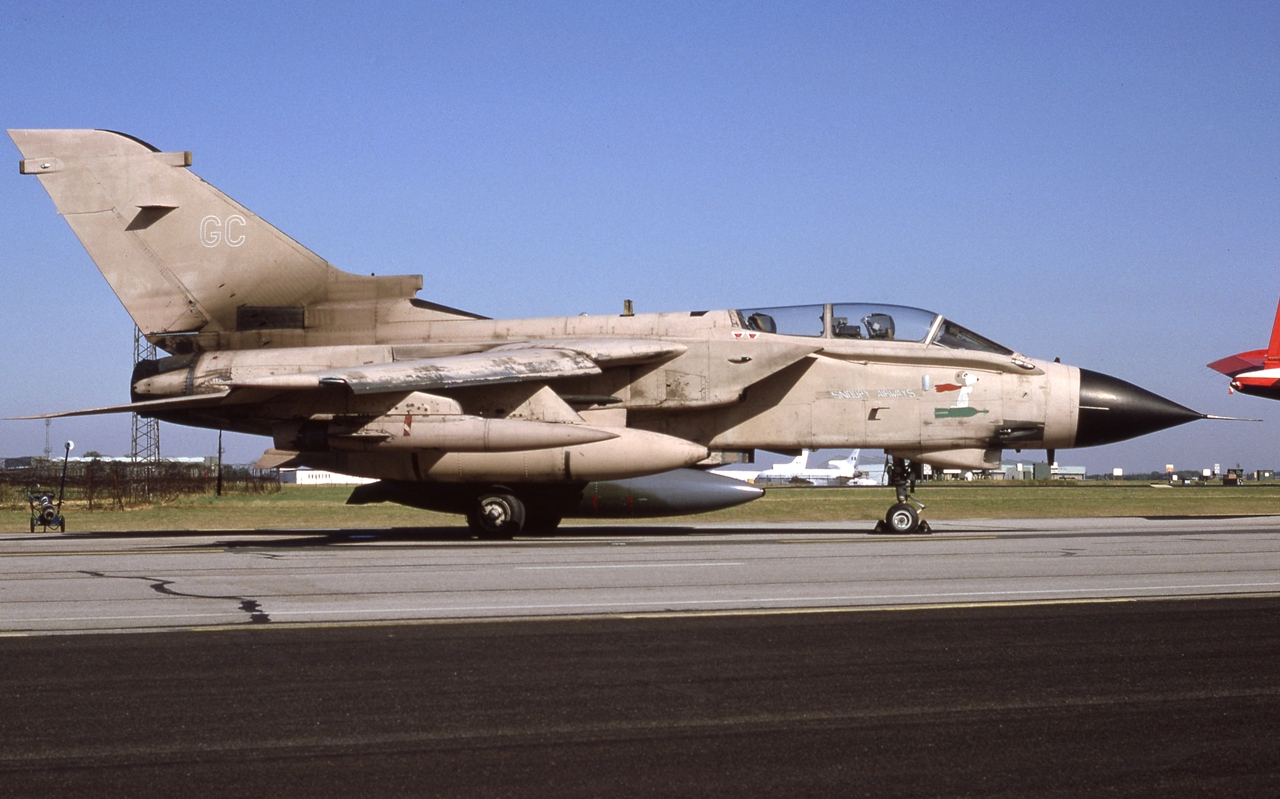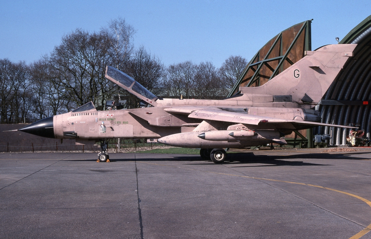 Allo scoppio delle ostilità durante la prima Guerra del Golfo, il 17 Gennaio 1991, la RAF aveva gia’ schierato 60 Tornado GR.1 che fin dal primo giorno furono protagonisti delle azioni belliche contro le forze irachene. Per l’impiego nel deserto, gli aerei furono verniciati con una mimetica color sabbia ; nelle fasi preparatorie e di ambientamento precedenti la guerra e subito dopo l’inizio delle ostilità, molti esemplari furono colorati dai loro equipaggi e dagli addetti alla manutenzione con le “nose art” che riprendevano quelle dei bombardieri della II Guerra Mondiale.