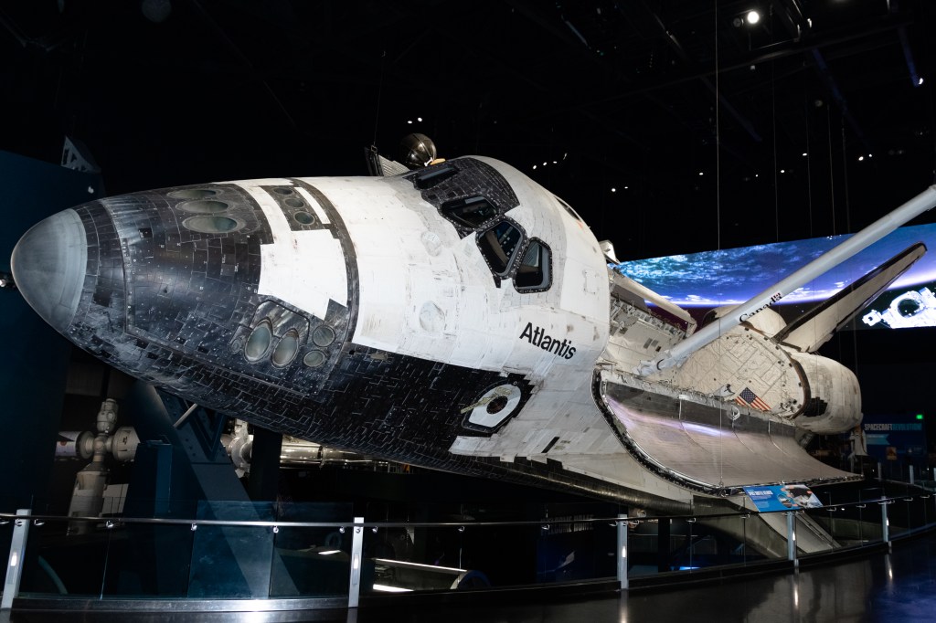 Proseguendo nella visita, si può raggiungere l’edificio dedicato allo Space Shuttle Atlantis, custodito in una struttura alta come un palazzo di 10 piani, con un estensione di circa 5900 metri quadrati, è ben riconoscibile grazie all’external tank ed i solid rocket boosters posizionati davanti all’ingresso. Il piano da 100 milioni di dollari per portare l’orbiter al KSC risale al 2010 ed il 12 aprile 2011, durante il trentesimo anniversario del lancio della STS-1, la NASA ha annunciato che lo Space Shuttle Atlantis sarebbe stato esposto al pubblico, in modo permanente, dopo il suo ultimo volo durante la STS-135 e la successiva dismissione. La mostra è stata inaugurata ufficialmente il 29 giugno 2013, offrendo una vista a 360 gradi dello shuttle.