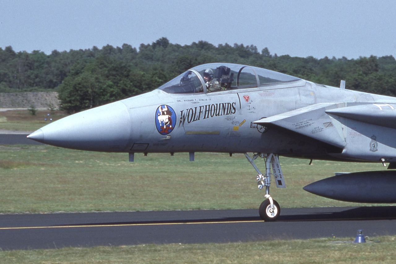 Tra la fine del 1978 e l’inizio del 1979, i “Wolfhounds” hanno invece effettuato la conversione sull’F-15 Eagle (alternando poi l’utilizzo di varie versioni di questo velivolo), specializzandosi in compiti di superiorita’ aerea.