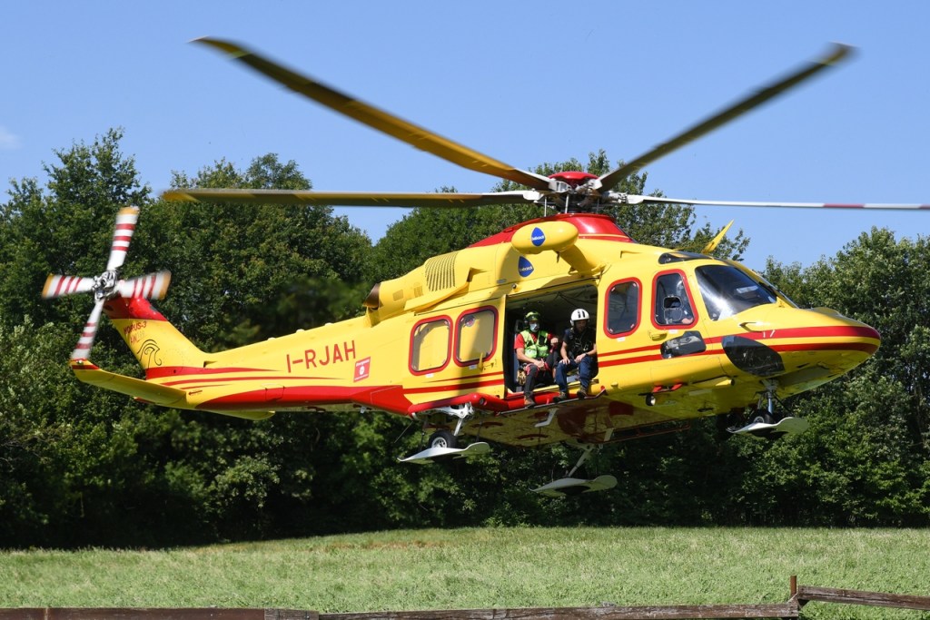 The aircraft started operating from the so-called “Advanced Base Post” in the mid-afternoon, initiating (with the collaboration of the many specialized CNSAS volunteers) a wide range of operations, such as embarkation and disembarkation of personnel and stretchers and descent and ascent by means of winches.