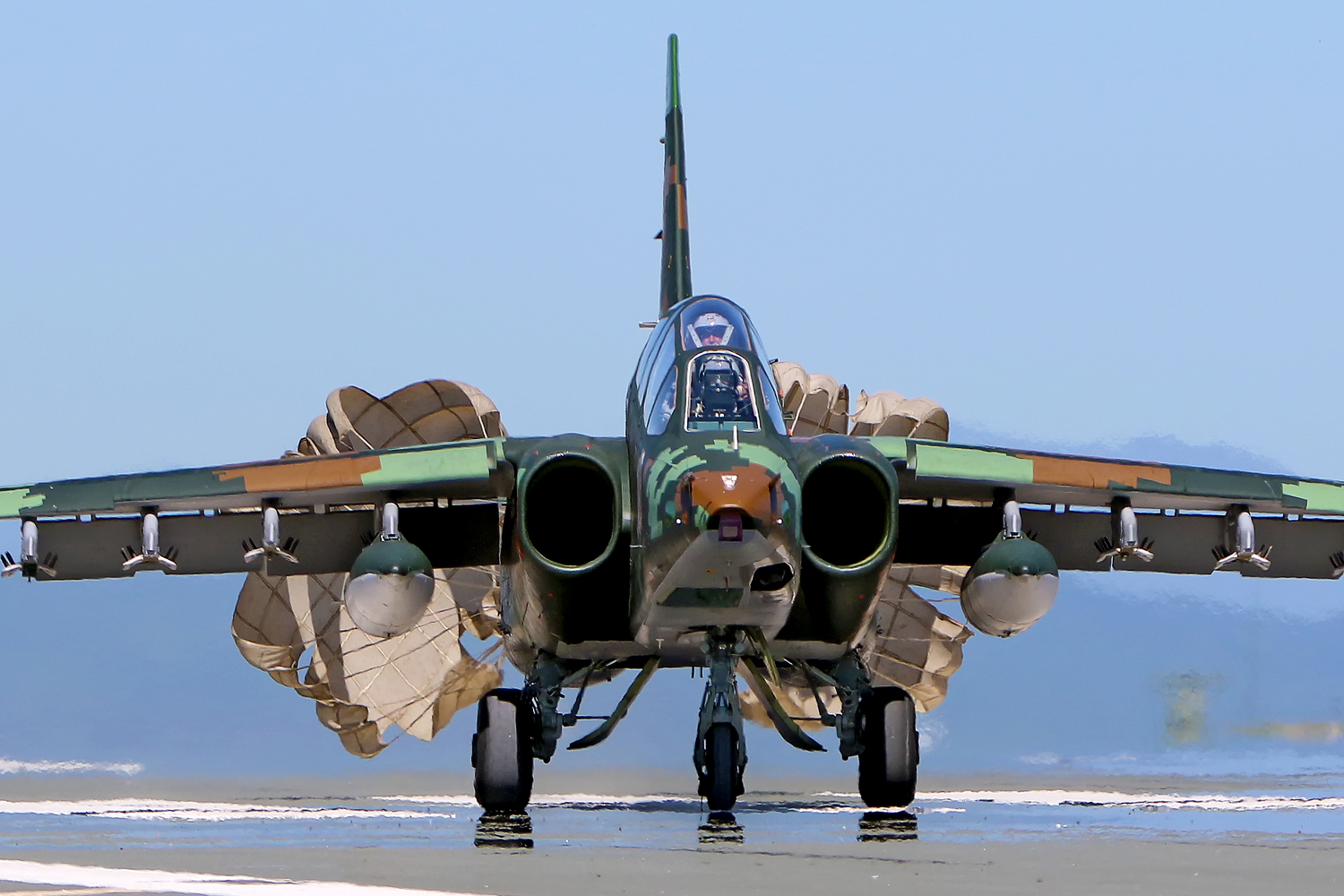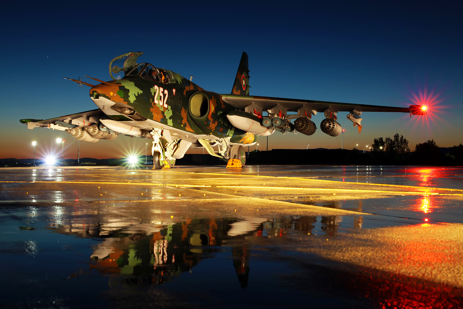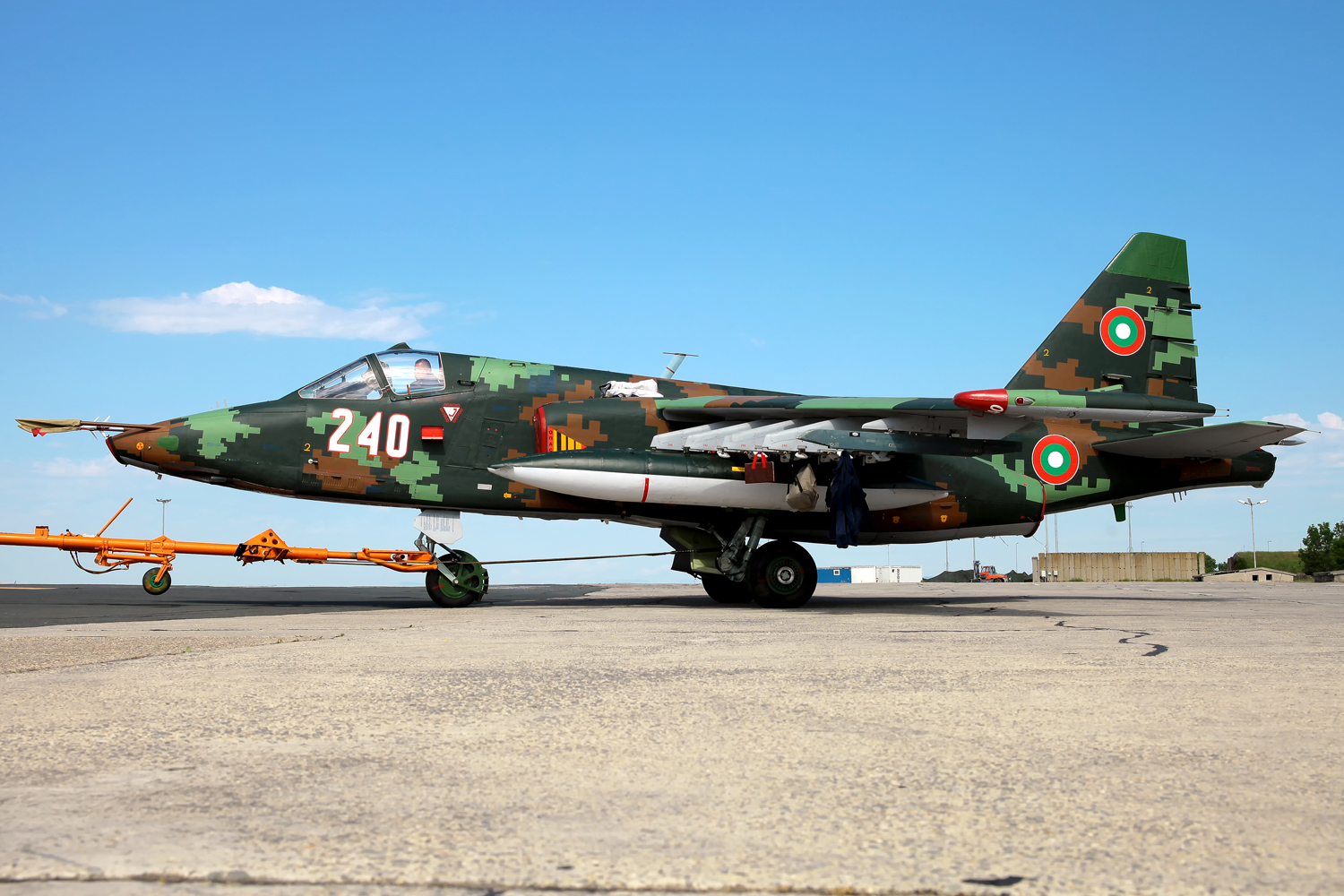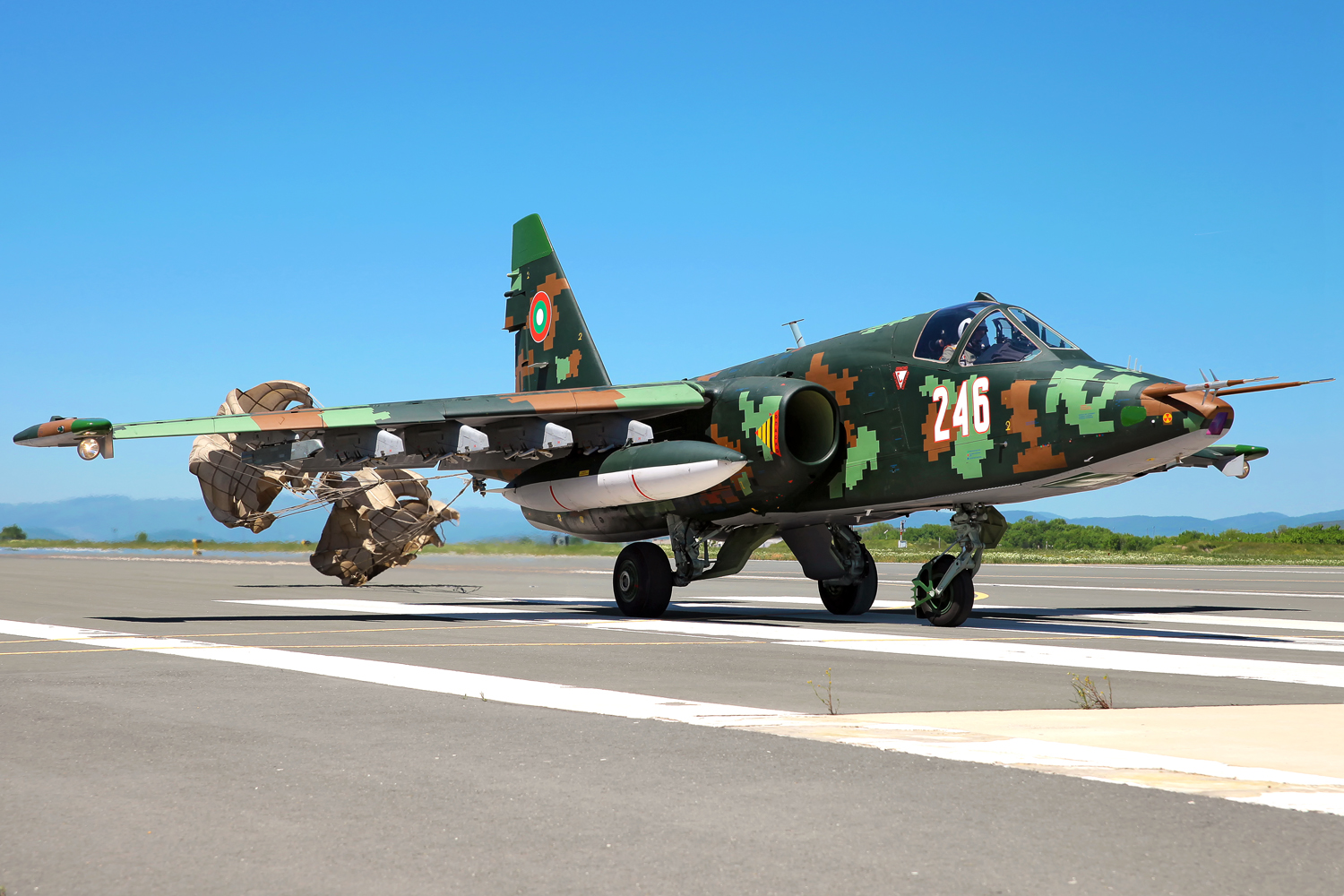 Tutto questo e altri sistemi recentemente implementati rendono i Su-25 bulgari più pronti al combattimento e molto più efficaci nel fornire supporto aereo diretto, isolare l’area di combattimento e assistere l’ingaggio di forze terrestri e navali . Il contratto con la Bielorussia prevedeva la revisione di due aerei da addestramento da combattimento, sei aerei da combattimento e 16 motori, nonché modifiche / sostituzioni di sistemi, blocchi e unità dell’avionica di bordo. Il primo Su-25 K aggiornato , seriale 246, è rientrato alla base di Bezmer il 21 settembre 2020 dopo più di un anno dal suo spostamento in suolo bielorusso. Il giorno seguente è tornato il secondo aereo, stavolta il Su-25 UBK , seriale 002 , mentre il terzo Su-25 K , seriale 253 , è arrivato il 20 ottobre 2021. La riammissione ufficiale in servizio dopo l’assemblaggio e il collaudo di tre aerei d’attacco ha avuto luogo il 25 ottobre 2020 e altri tre veicoli in due lotti – nel dicembre 2020. Il settimo Su-25 aggiornato è arrivato a Bezmer il 29 gennaio 2021. Tutti i velivoli rientrati indossano una magnifica combinazione di colori digitale denominata a pixel molto particolare. Dopo la valutazione degli aeromobili riparati e modernizzati ricevuti, l’Aeronautica Militare bulgara prenderà in considerazione la possibilità di inviare altri sei Su-25 (4 Su-25K e 2 Su-25UBK) a Baranovichi in base al contratto iniziale .