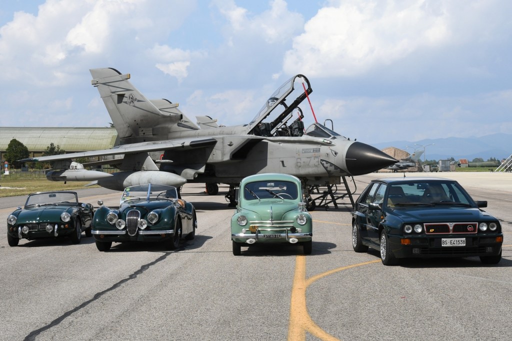 The flight schedule saw a “customized” exhibition of the Frecce and some more flypasts of the home Tornados, until their landing and taxiing in front of the media audience. The special colour Tornado was then surrounded by various cars, veterans of the “Mille Miglia” competition, for a nice twinning. Followed by various customary photos with the crews and other protagonists of the day.