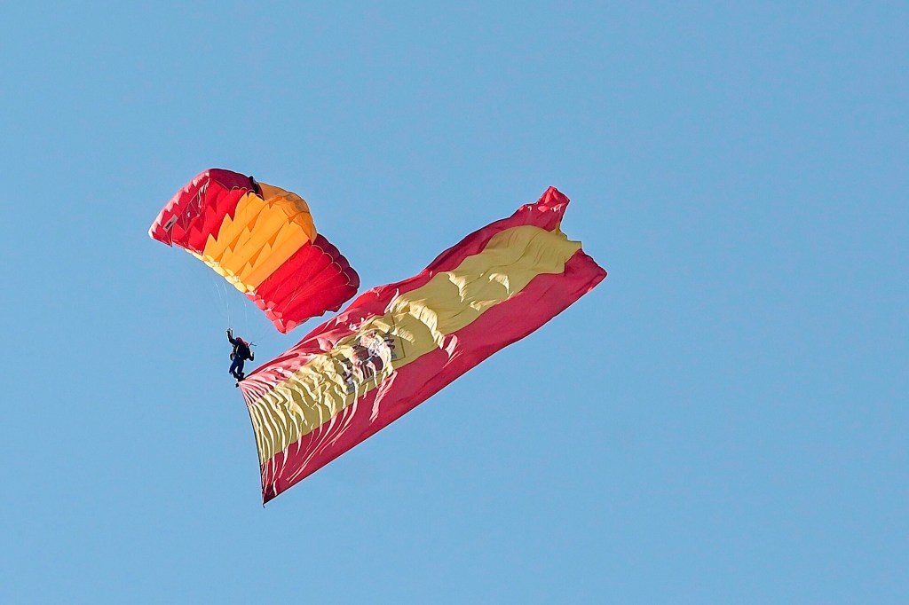 Successivamente un reparto di paracadutisti dell’esercito del Aire ( PAPEA ) è atterrato nella Plaza de Lima, dove si trovava la Tribuna Reale, trasportando un’insegna nazionale della dimensione di 54 metri quadrati pesante ben 15 kg. Con i suoi 44 anni di storia, la PAPEA è tra le migliori squadre di paracadutismo del mondo.