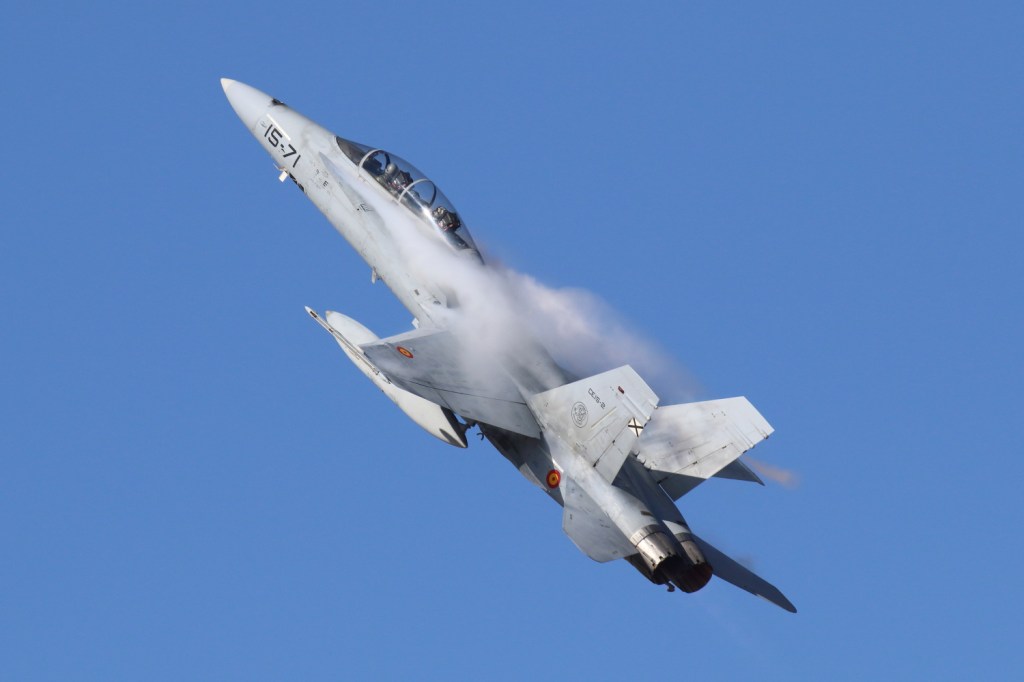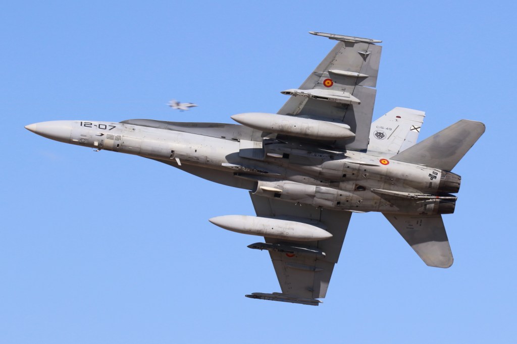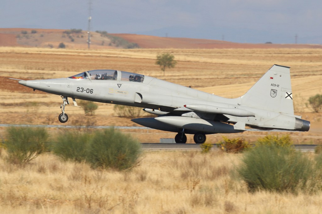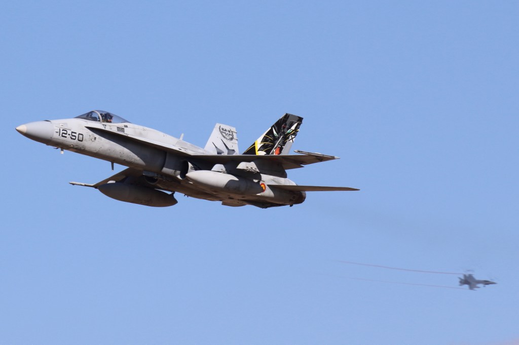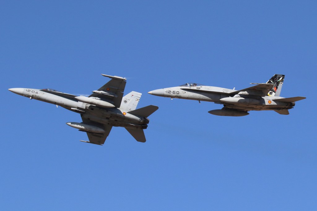 Thus, in addition to the homebased Hornets, the EF-18/ABs from Zaragoza ( Ala 15 ), the Eurofighter Typhoons from Albacete ( Ala 14 ), the Northrop F-5s from Talavera ( Ala 23 ) and the Armada’s AV-8B Harrier IIs stationed at the Rota Naval Air Station were also present.