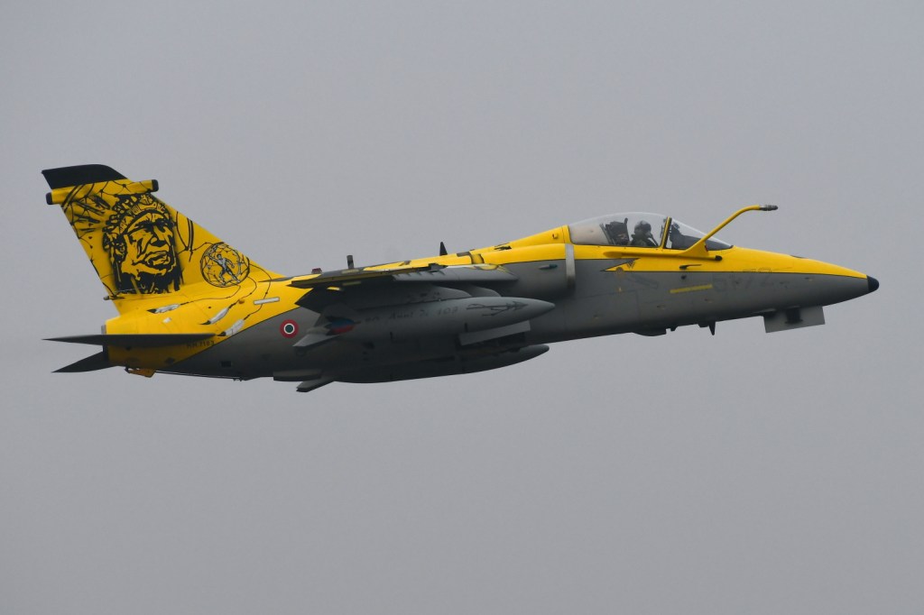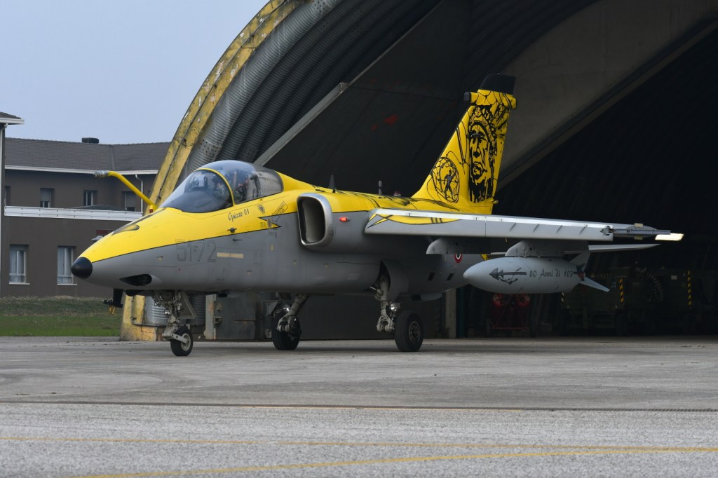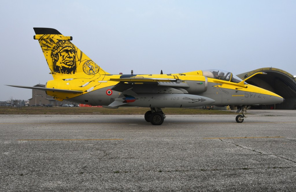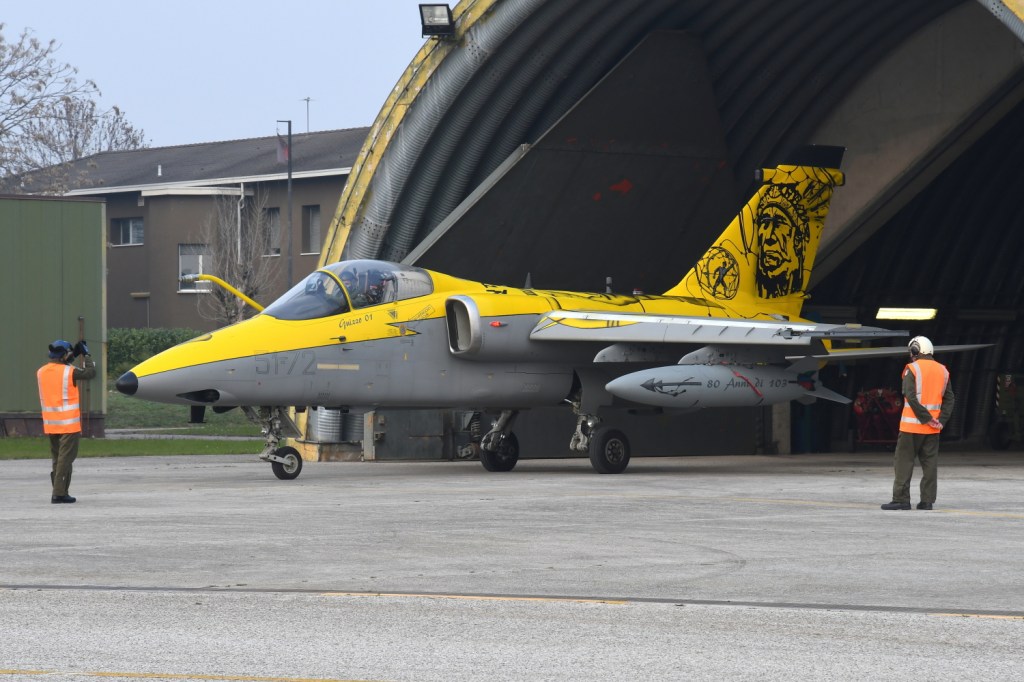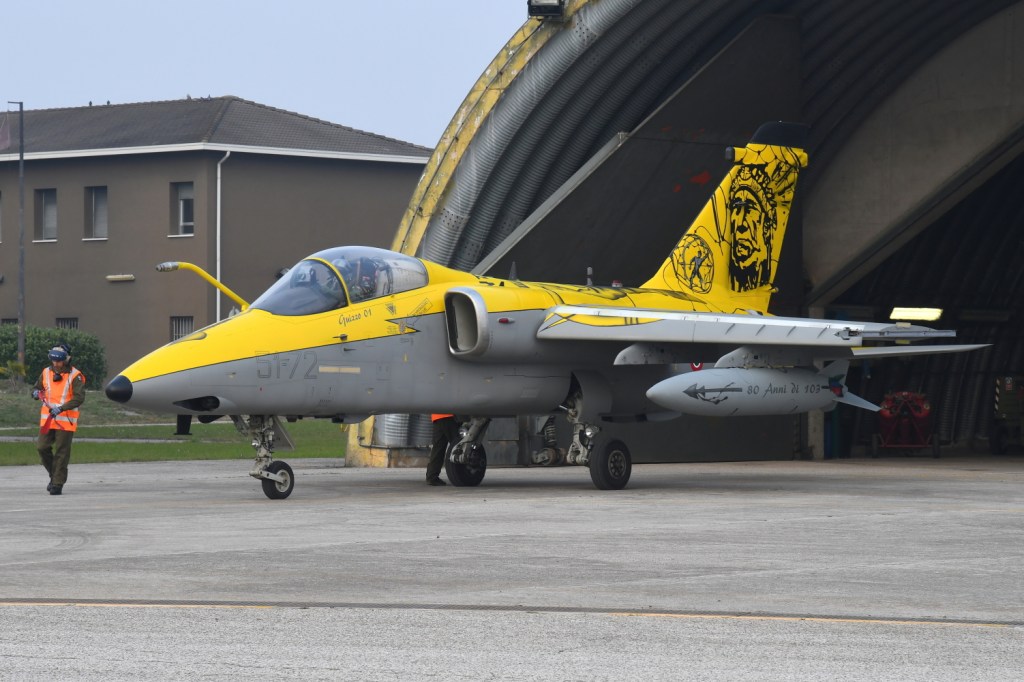Then there was time for the operational activity, with the possibility to see the starting procedures and then the taxiing of two AMXs from their respective shelters. One of the two had a beautiful, special livery for the 80 years of the “Indians” of the 103rd Gruppo (currently in “quadro” position), flown by Colonel Chiadroni himself.