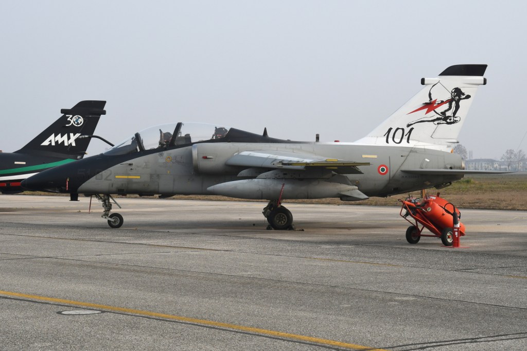 Nei vicini piazzali è stata allestita una mostra statica, con vari AMX special colour in bella mostra in linea di volo ed alcuni velivoli storici, come il G.91, l’F-104, l’ MB-326 ed il T-33.