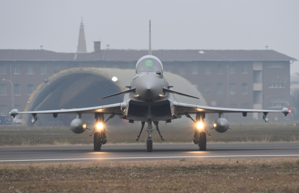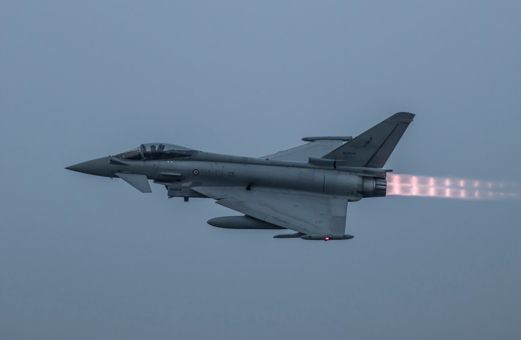 Il gruppo degli spotter è stato poi portato a sud della pista, dove ha potuto assistere al rullaggio e decollo dei due AMX e al successivo – notevole – decollo di due Eurofighter, un biposto e un monoposto.
