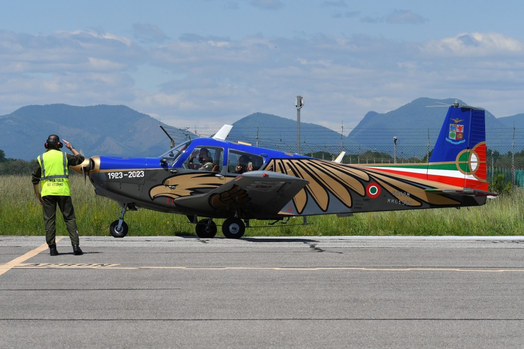 On May 15-17, the students had the exciting experience of formation flying on the Siai S-208M propeller-driven aircraft. This aircraft has been in the air force since the late 1960s and has been used – and still is – for training, glider towing and liaison duties. Two of the planes had a beautiful livery, celebrating 100 years of our “Arma Azzurra”, and we were told that the unit, with one of these planes, will be invited to the “International Air Tattoo” air show in the United Kingdom.