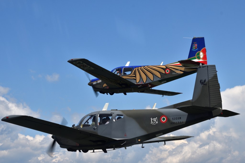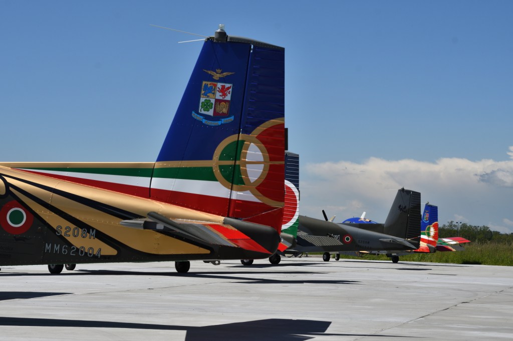 Nei giorni dal 15 al 17 maggio gli studenti hanno potuto vivere l’emozionante esperienza del volo in formazione sui velivoli ad elica Siai S-208M. Questo aereo è presente nella forza aerea dai tardi anni 60 ed è stato impiegato – e lo è tuttora – per compiti di addestramento, traino alianti e collegamento. Due degli aerei avevano una bella livrea celebrativa dei 100 anni della nostra “Arma Azzurra” e ci è stato detto che il reparto, con uno di questi aerei, sara’ invitato alla manifestazione aerea dell’ “International Air Tattoo” nel Regno Unito.