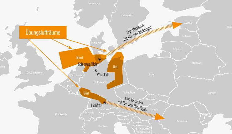 The bases of Neuburg, Lechfeld, Schleswig/Hohn, Wunstorf along with Geilenkirchen and Spangdahlem, which are NATO and Usafe (United States Air Force in Europe) bases respectively, the latter being home to the 52nd Fighter Wing with F-16 aircraft, have been made available.