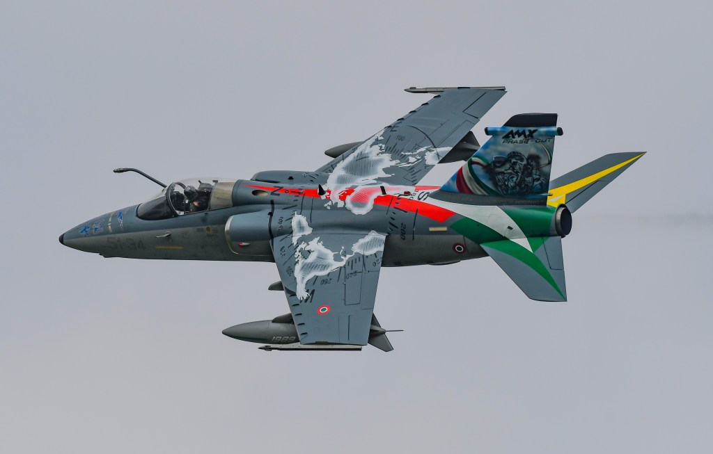 Progettato dalla società italiana Aermacchi (ora Leonardo) e dalla brasiliana Embraer, l’AMX ha volato per la prima volta nel 1984 ed è entrato in servizio operativo con l’Aeronautica Militare Italiana nel 1989. Dotato di un motore turbofan Rolls-Royce Spey, è stato progettato per operare da piste non pavimentate e ha una velocità massima di circa Mach 0.9.