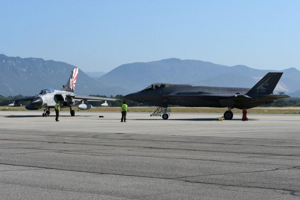 During the two-day event in Ghedi, more than one F-35 was spotted with the 154° Gruppo devil emblem near its air intake. And the aircraft coded “6-06” also featured the traditional stylized arrow, long worn in the past, in red, on the camouflaged Tornados.